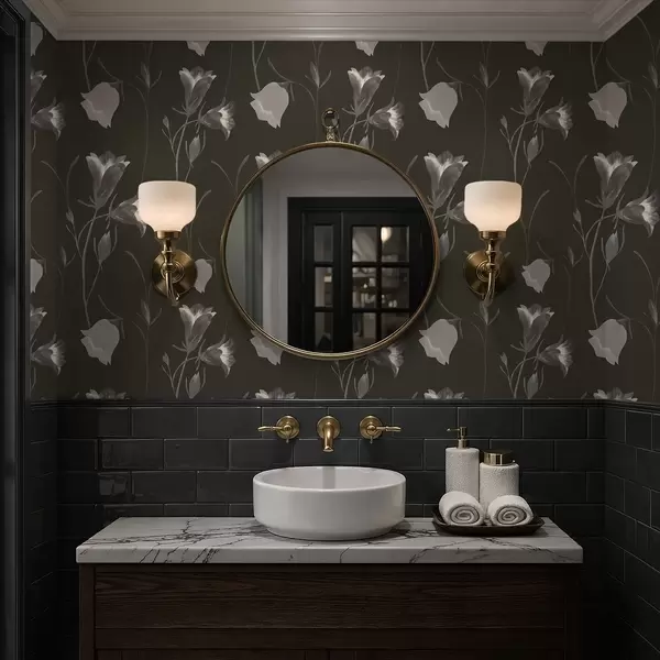 Tapetai Pilkos varpelio formos gėlės ant tamsaus fono Nr. a01119v1