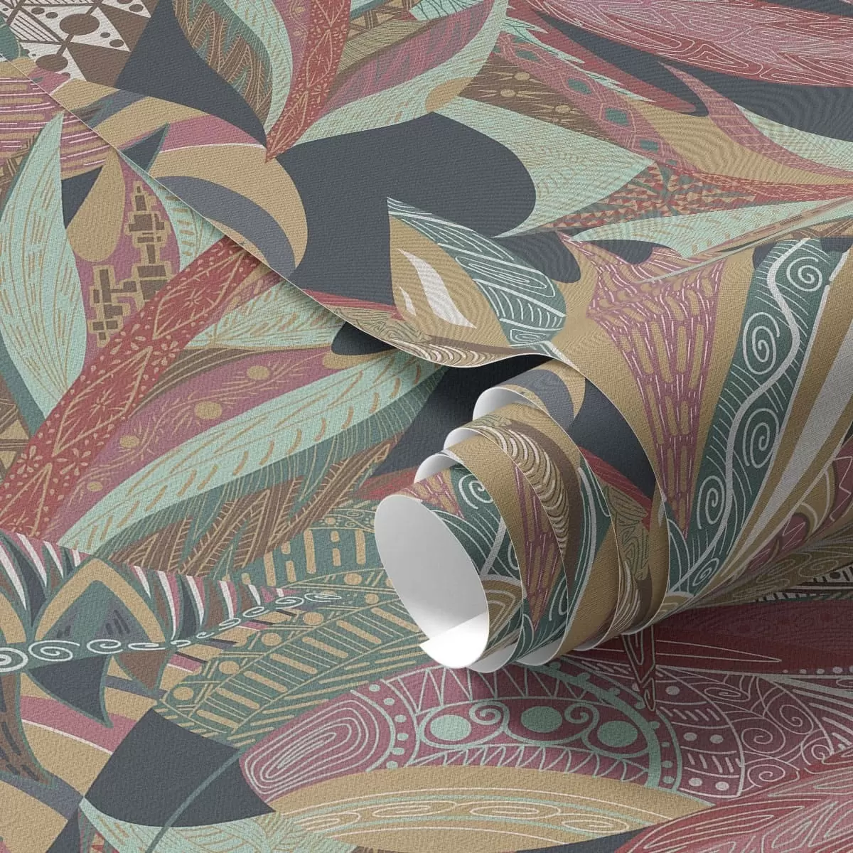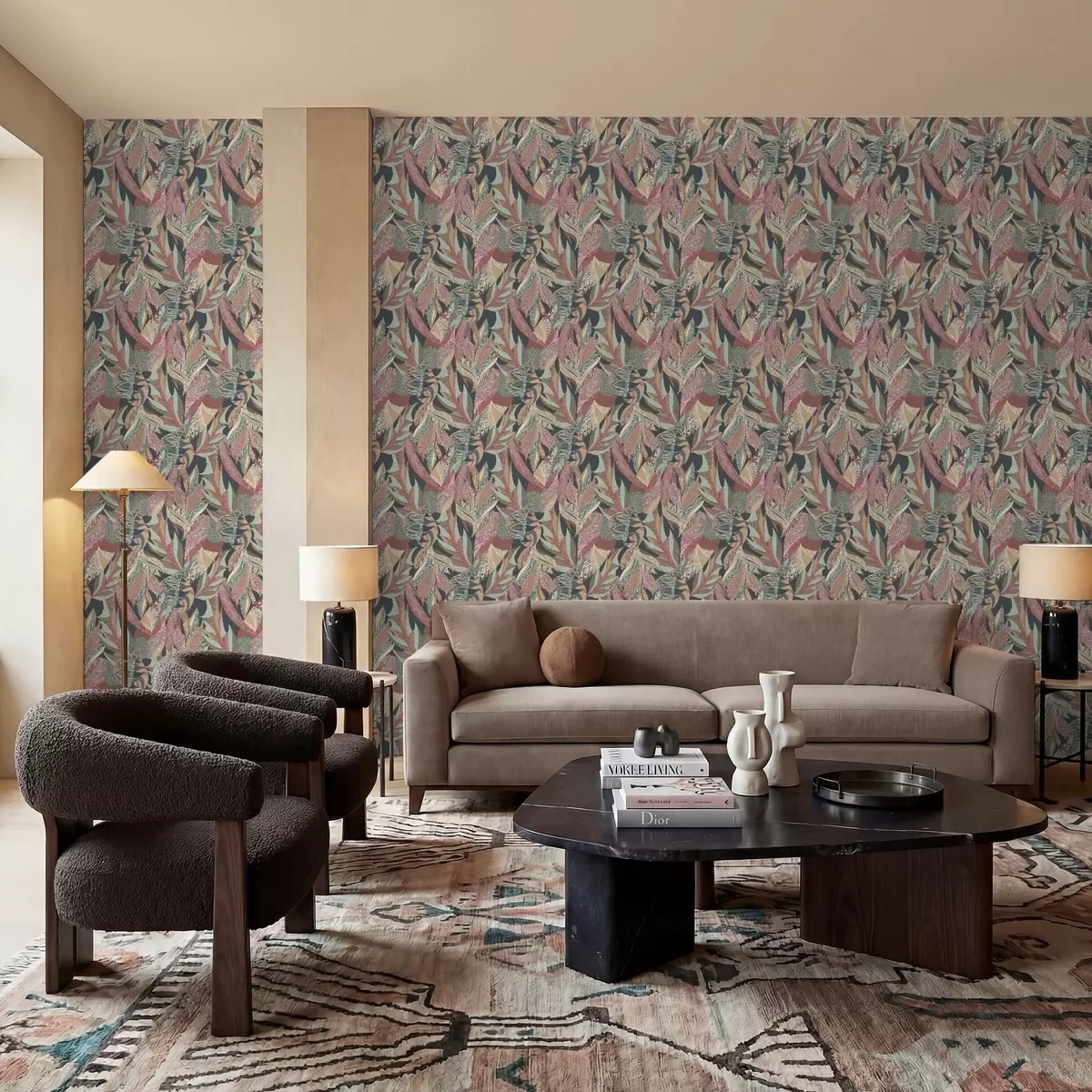 Tapetai Spalvingi raštuoti lapai ant tamsaus fono Nr. a01120