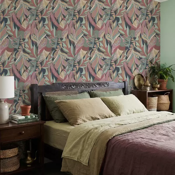 Tapetai Spalvingi raštuoti lapai ant tamsaus fono Nr. a01120