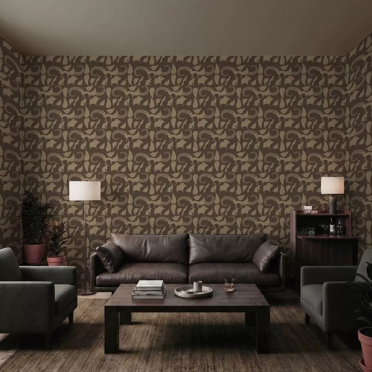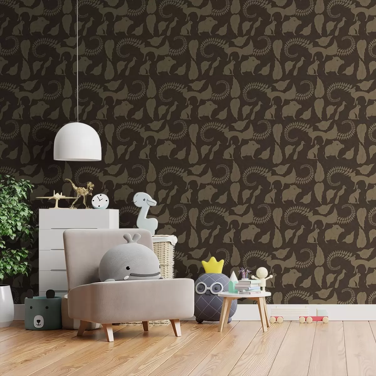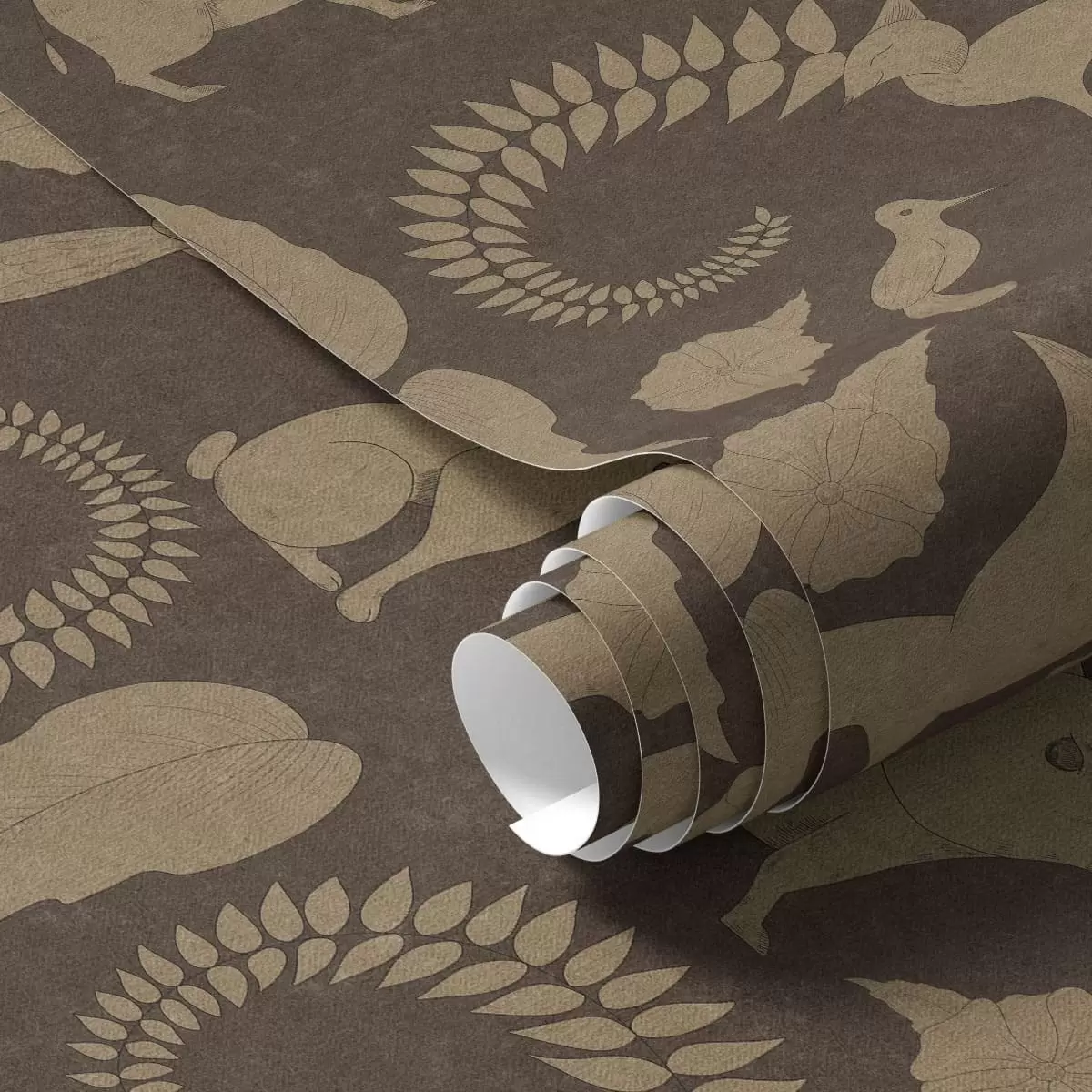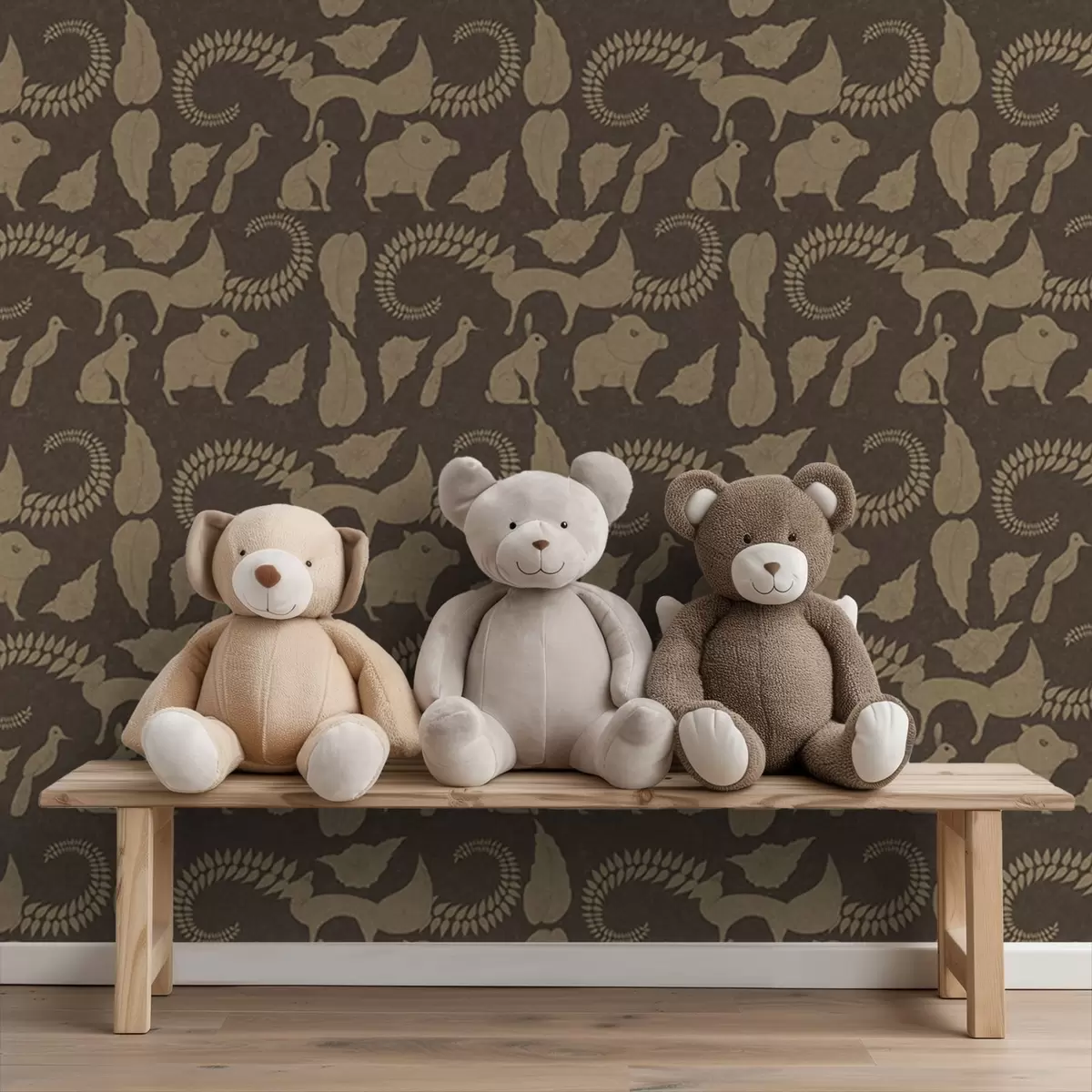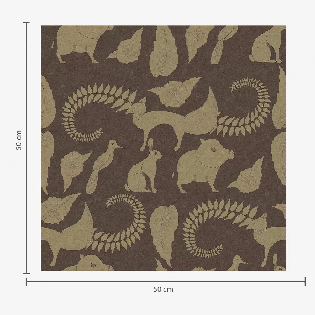 Tapetai Miško raštas su gyvūnais ant rudo fono Nr. a01121