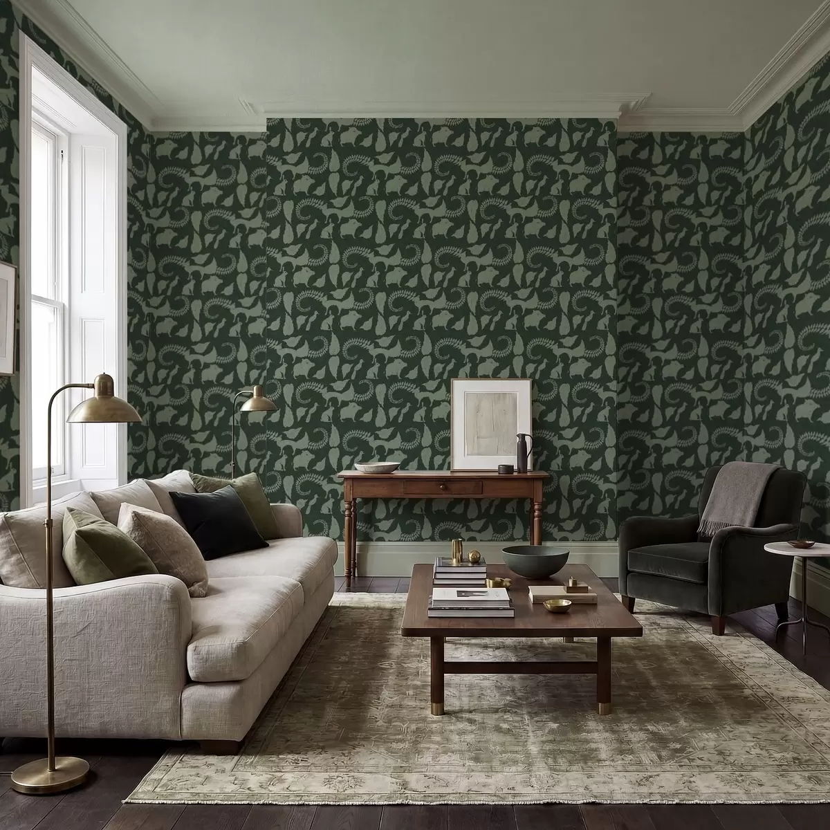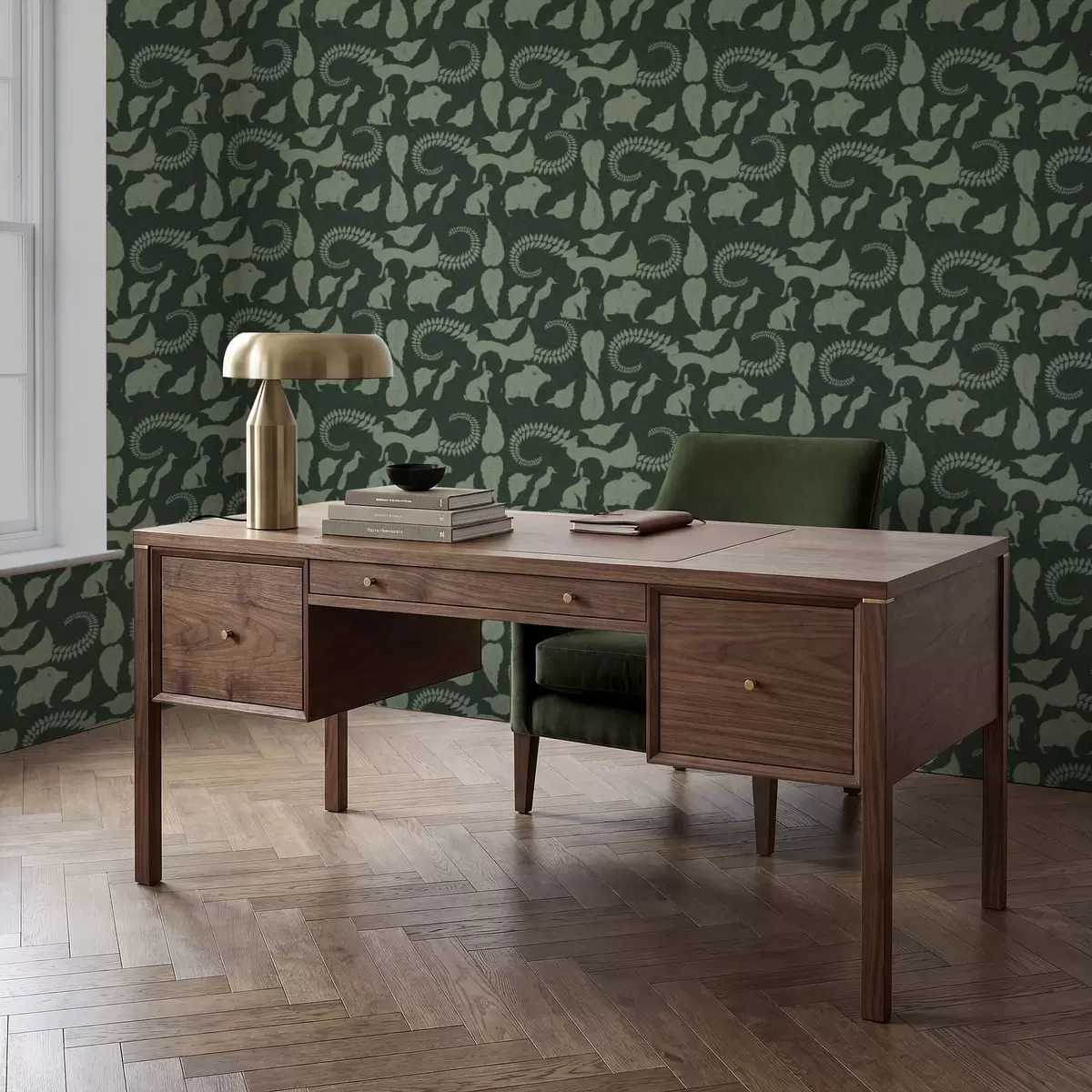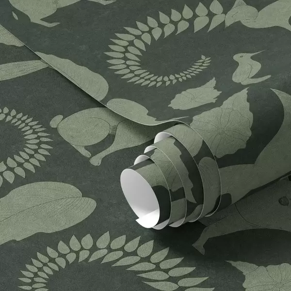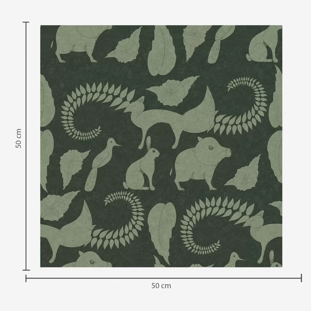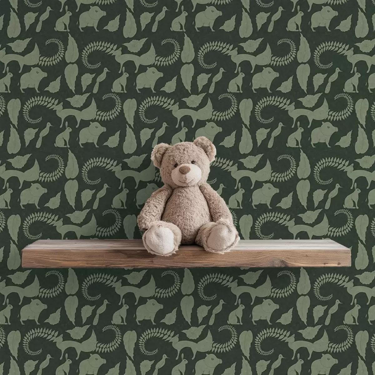 Tapetai Miško raštas su gyvūnais ant žalios fono Nr. a01121v1