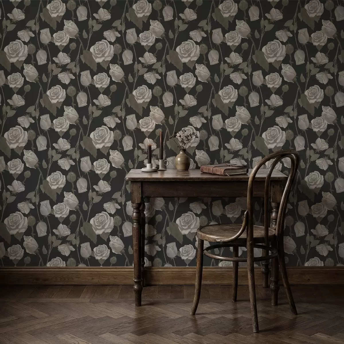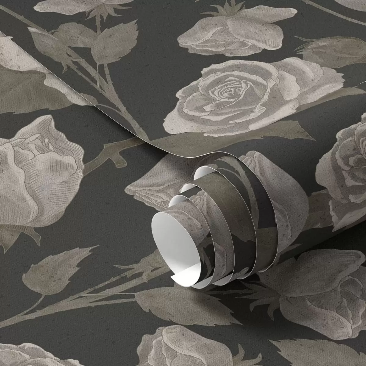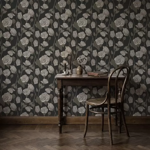 Tapetai Gėlių raštas su rožėmis ant tamsaus fono Nr. a01123