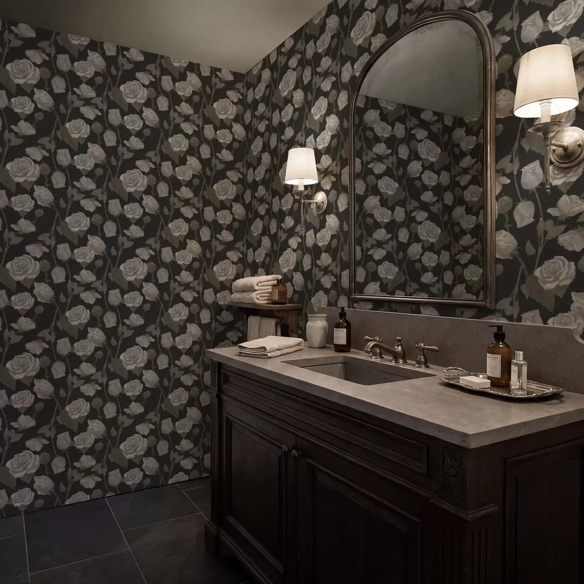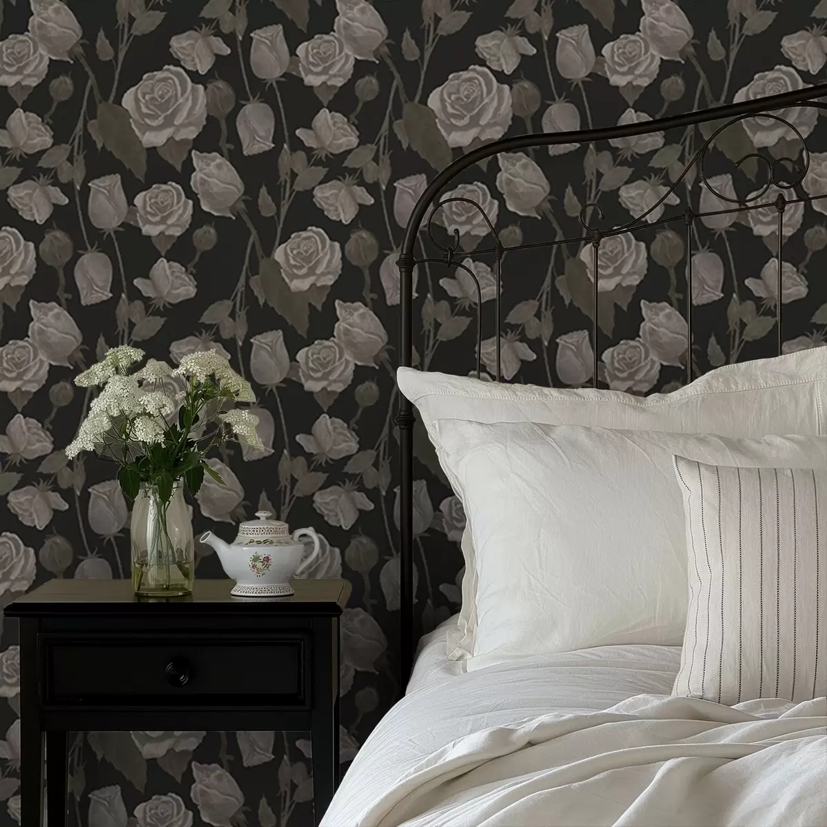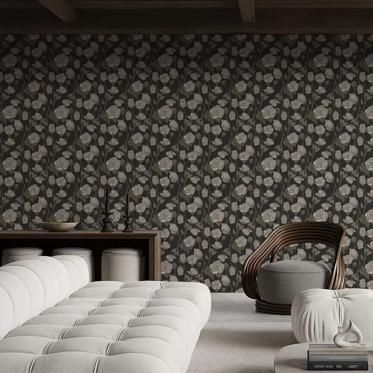 Tapetai Gėlių raštas su rožėmis ant tamsaus fono Nr. a01123