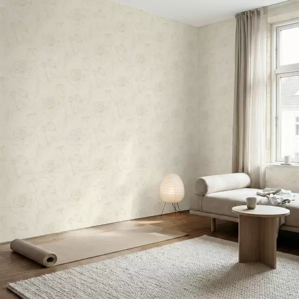 Tapetai Šviesus rožių raštas ant smėlio spalvos fono Nr. a01124