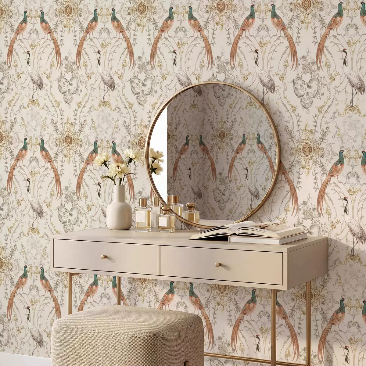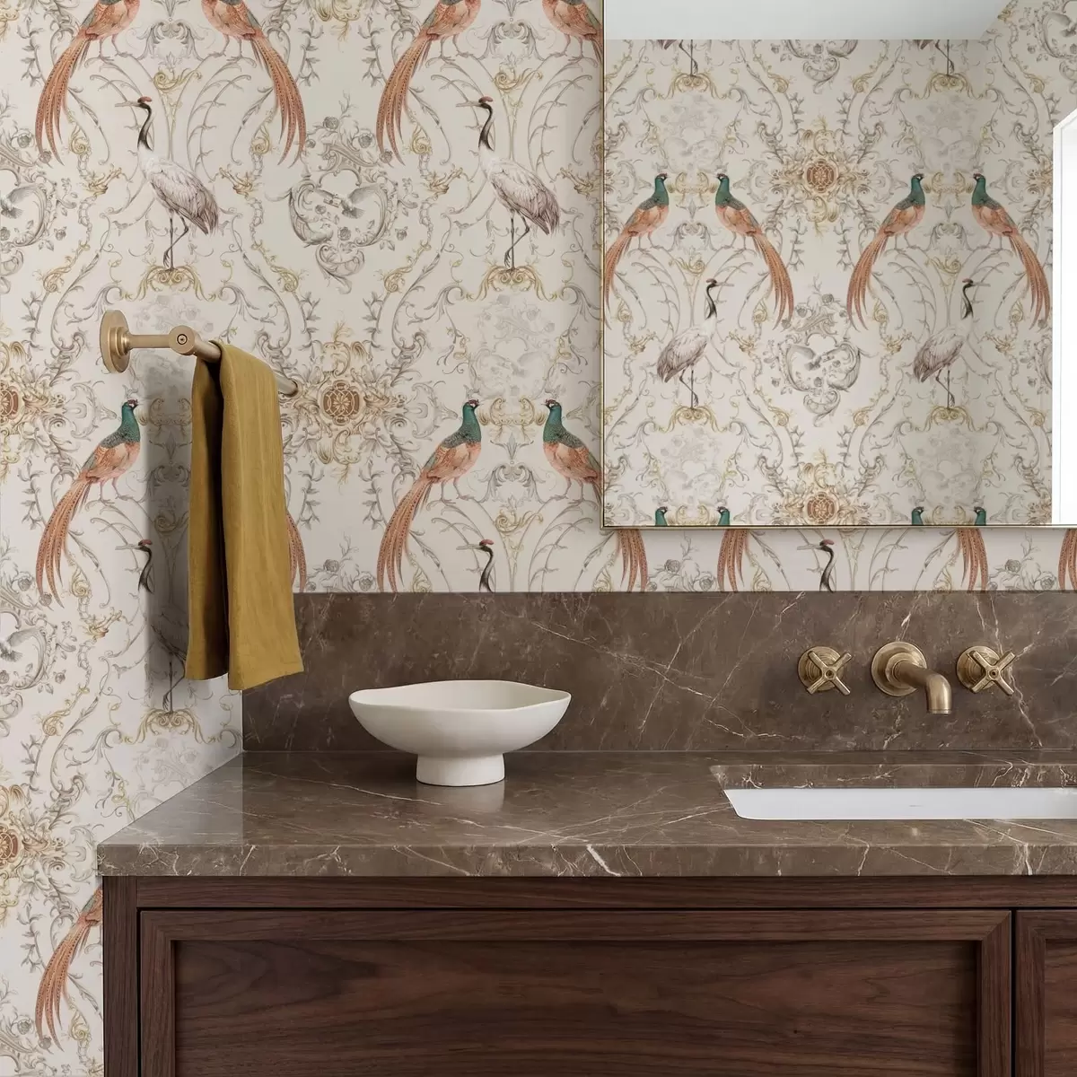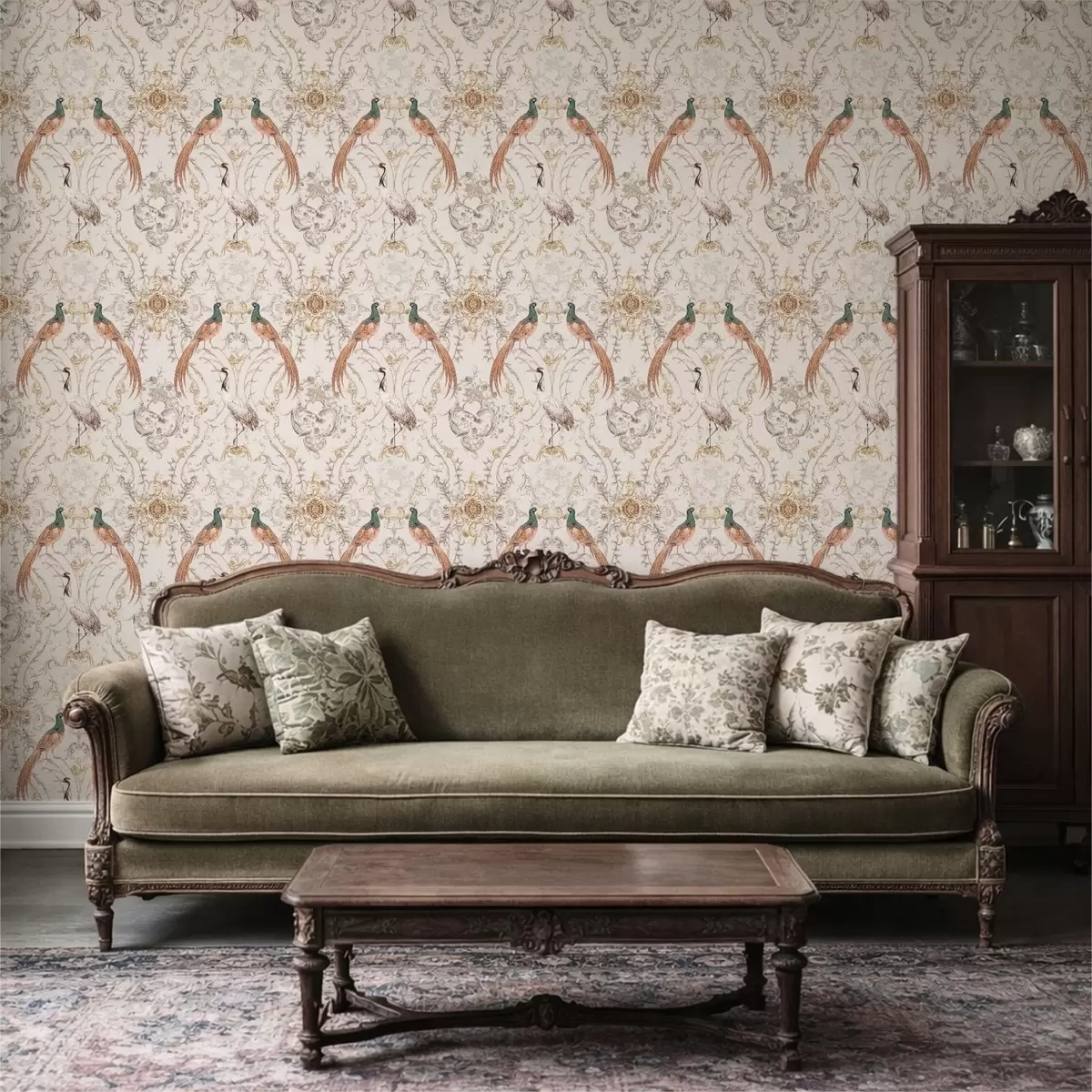 Tapetai Dekoratyvinis raštas su paukščiais ir motyvais Nr. a01156