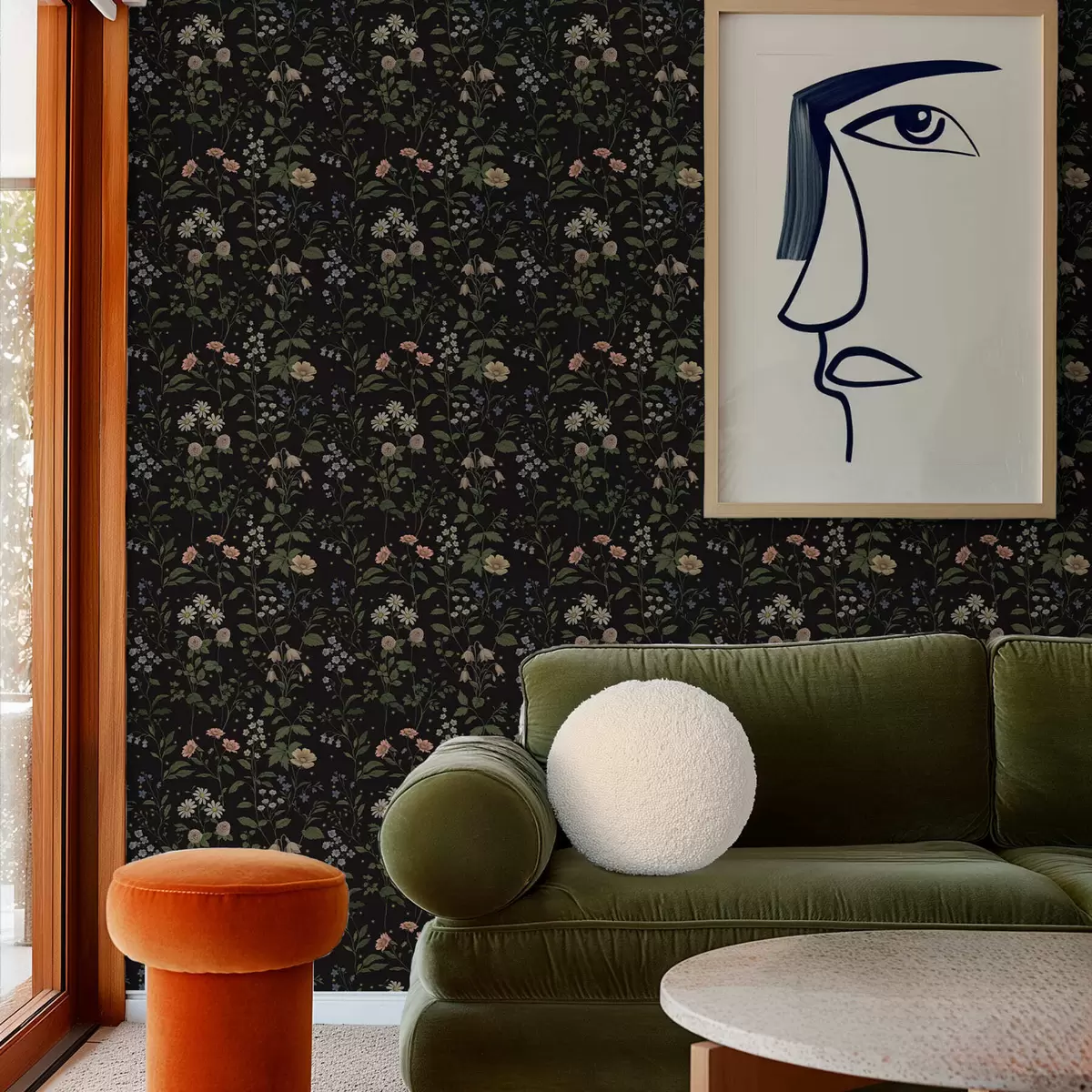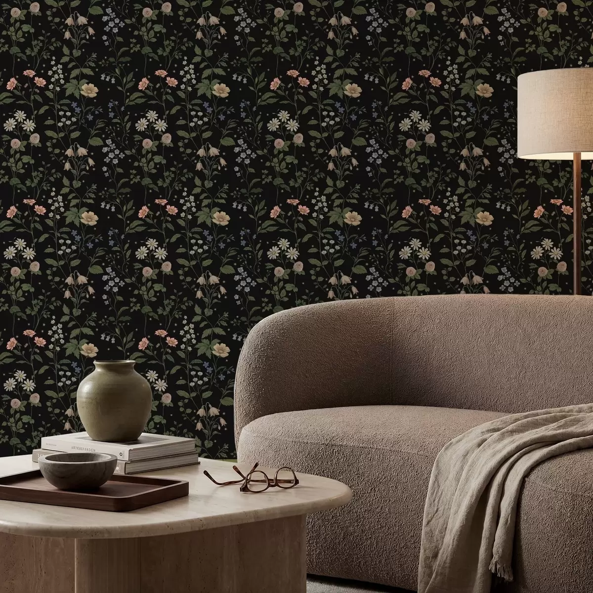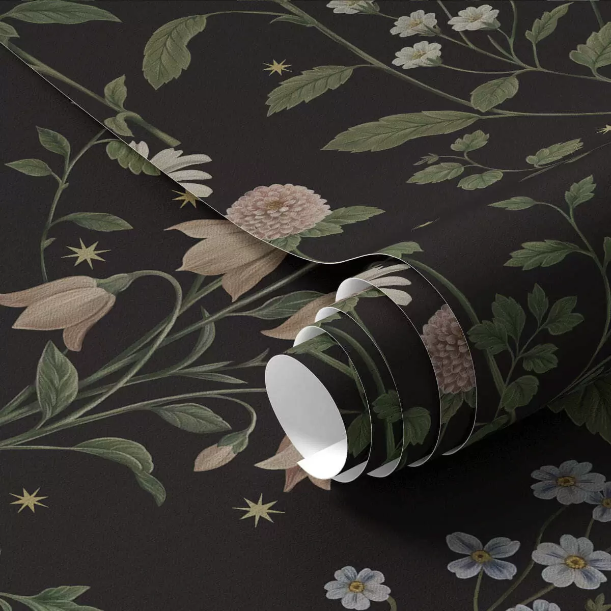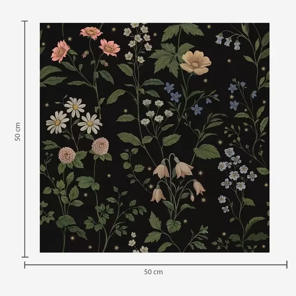 Tapetai Gėlių raštas ant juodo fono su žvaigždėmis Nr. a01160