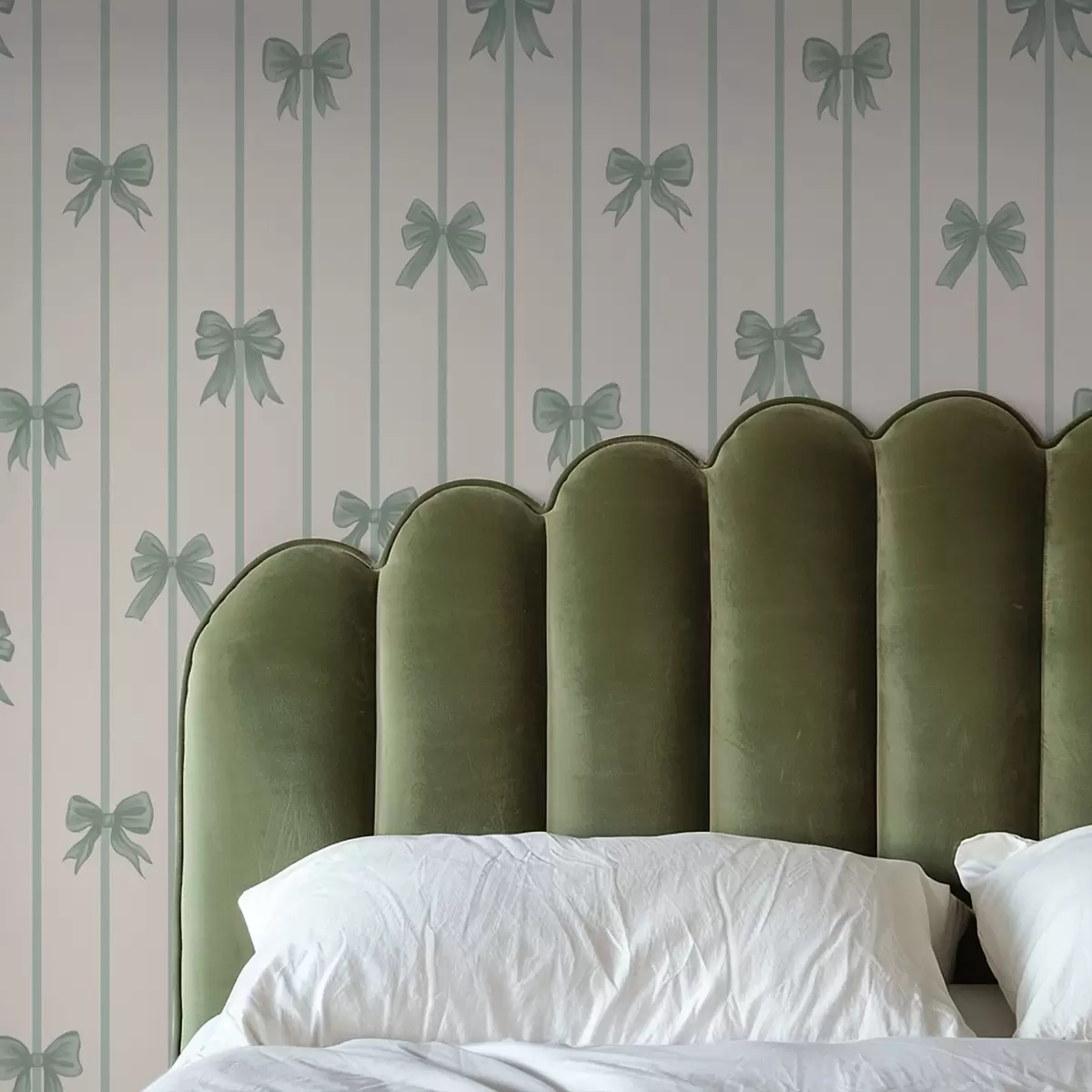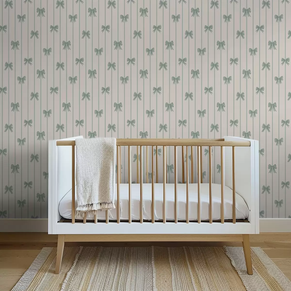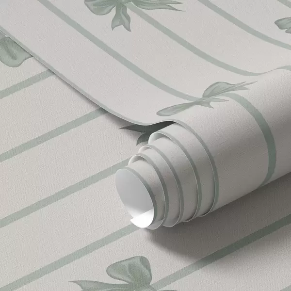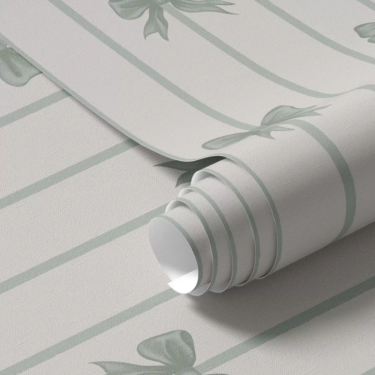 Tapetai Žalios kaspinos ant dryžuoto smėlio spalvos fono Nr. a01162v1