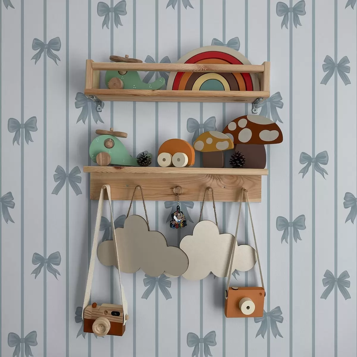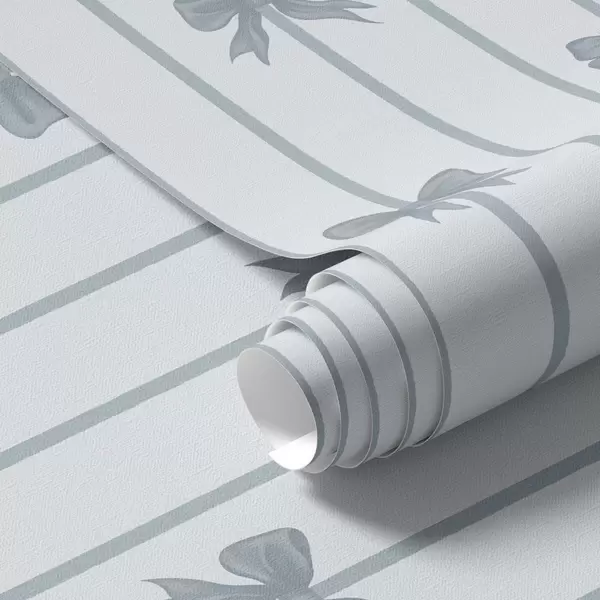 Tapetai Mėlynos kaspinos ant dryžuoto šviesaus fono Nr. a01162v2