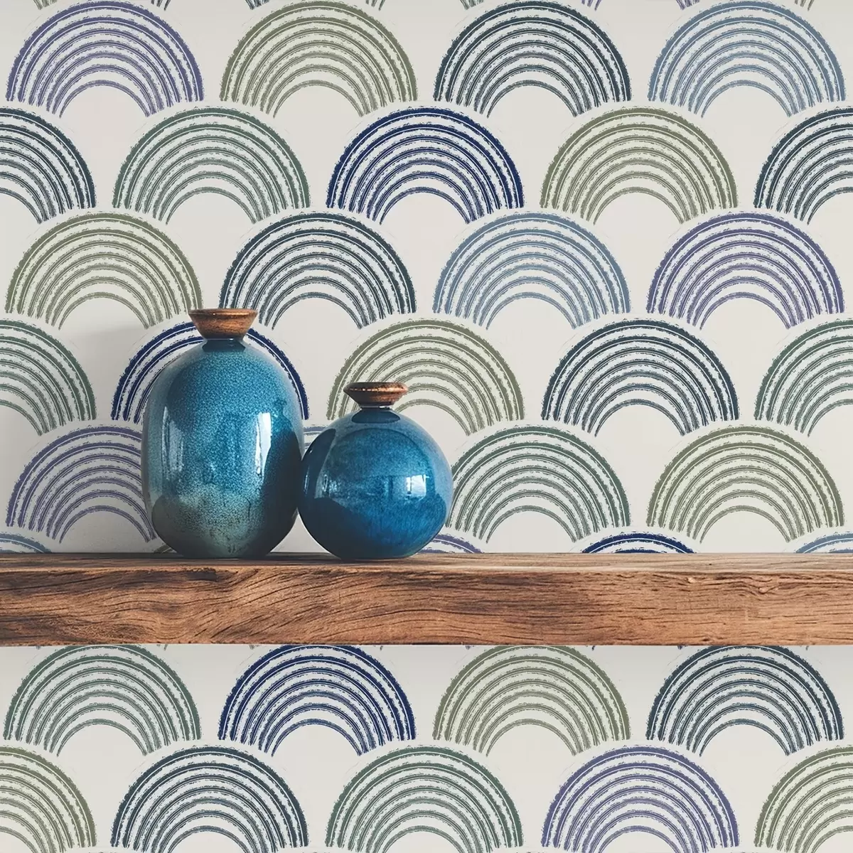 Tapetai Mėlynos ir žalios arkos, sudarančios pasikartojantį raštą Nr. a01164v2
