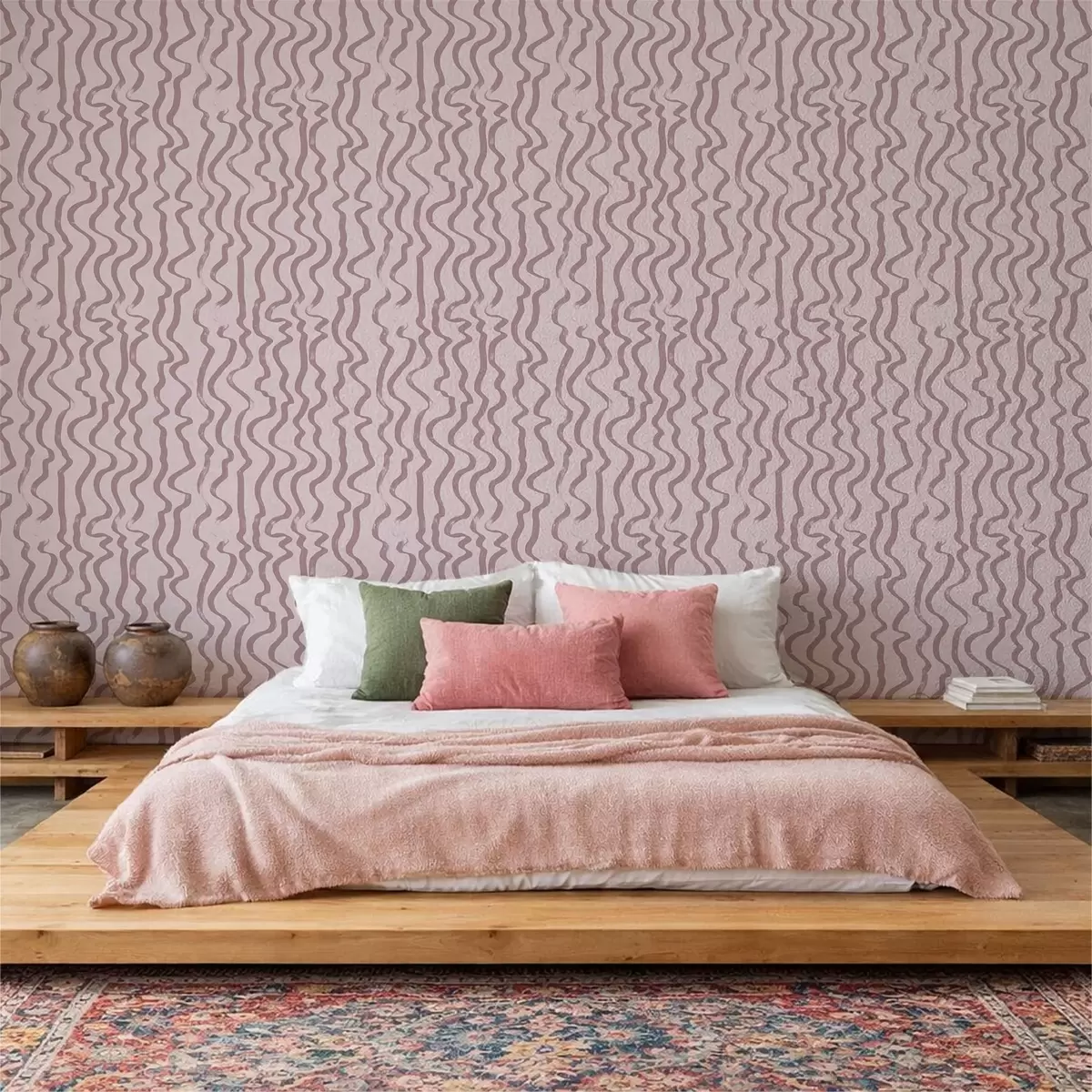 Tapetai Rožinės banguotos linijos šviesiame fone Nr. a01168v3