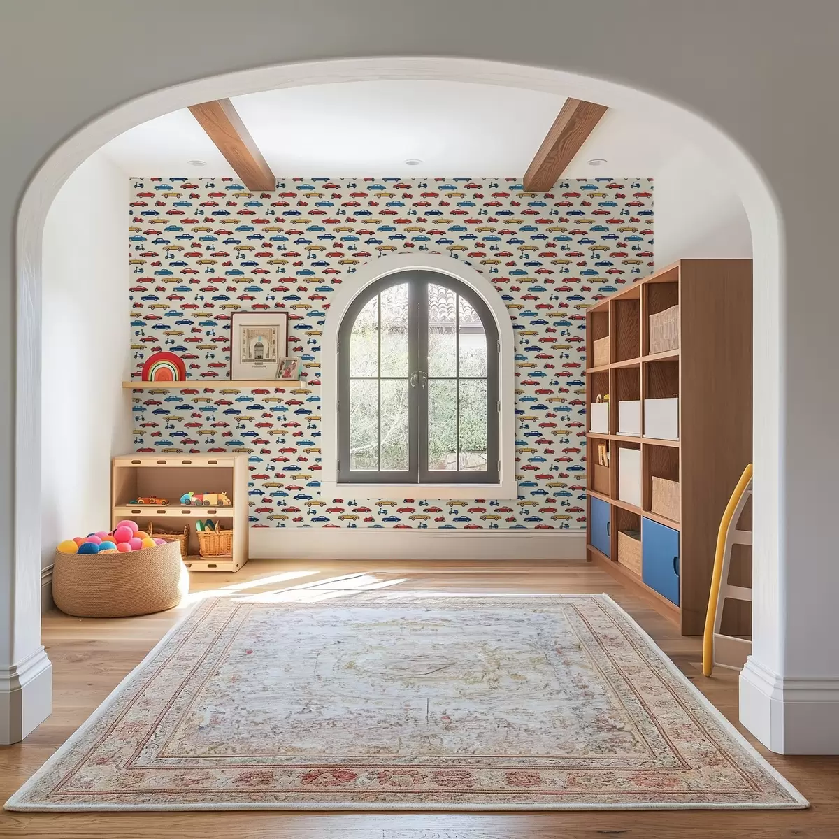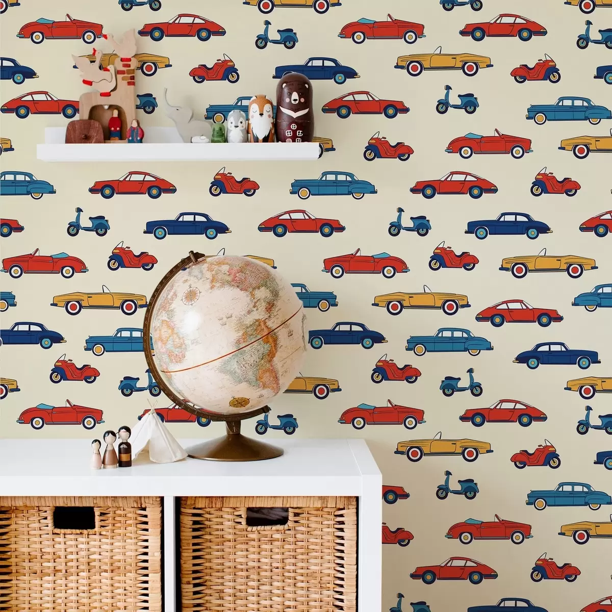 Tapetai Ryškūs retro automobiliai ir motoroleriai šviesaus fono fone Nr. a01172v1