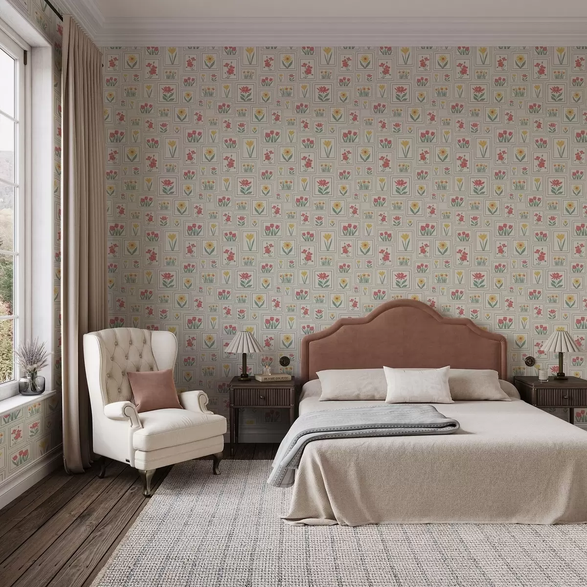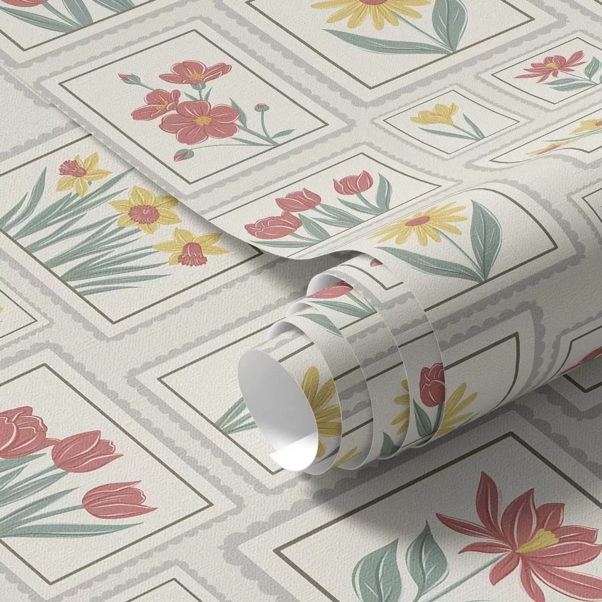 Tapetai Įrėmintos gėlių iliustracijos ant šviesaus fono Nr. a01173v1