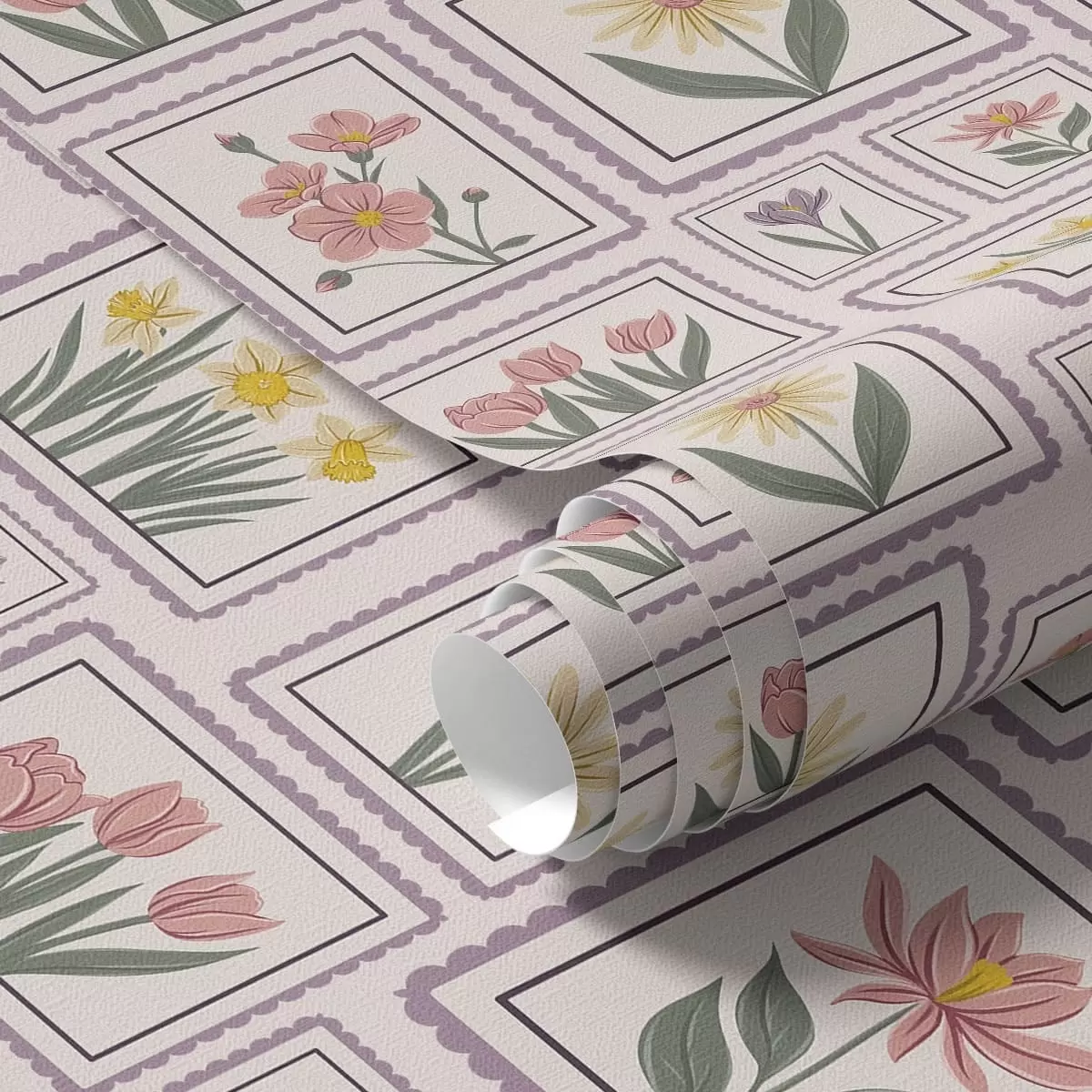 Tapetai Įrėmintos gėlių iliustracijos alyviniais atspalviais Nr. a01173v2
