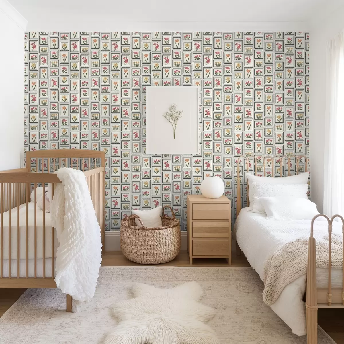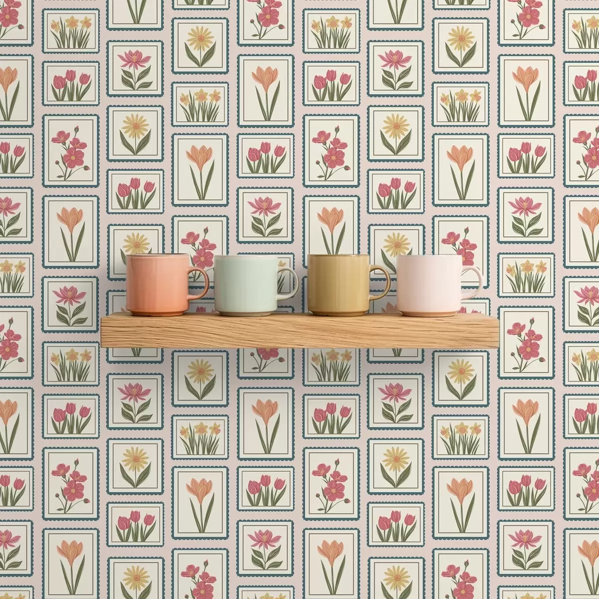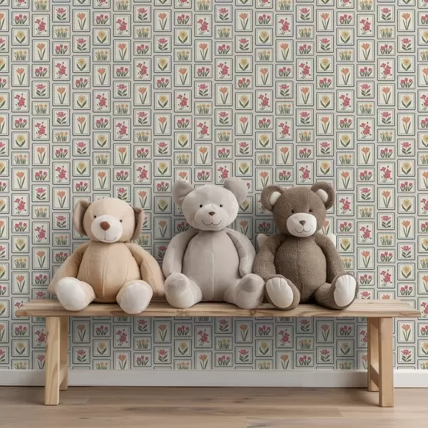 Tapetai Gėlių iliustracijos rėmeliuose su apvadais Nr. a01174