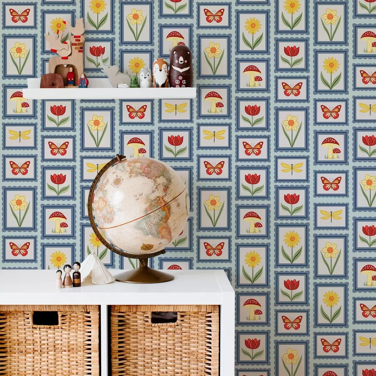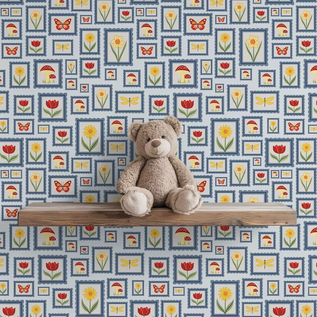 Tapetai Įrėmintos iliustracijos mėlyname fone Nr. a01176