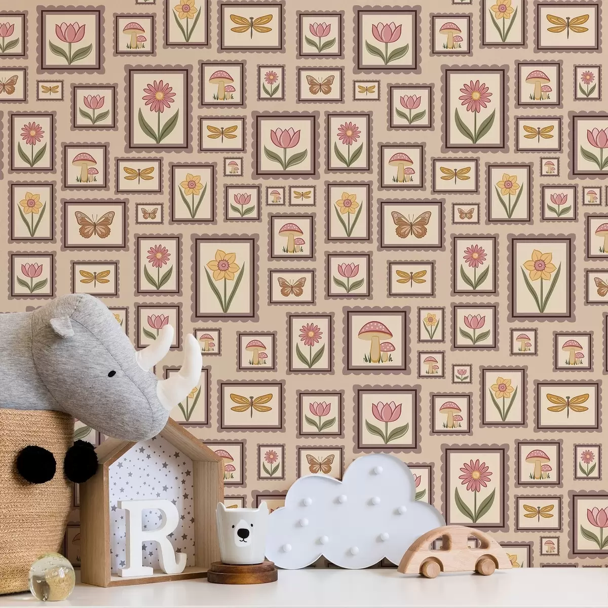 Tapetai Įrėmintos iliustracijos šiltų smėlio atspalvių Nr. a01176v2
