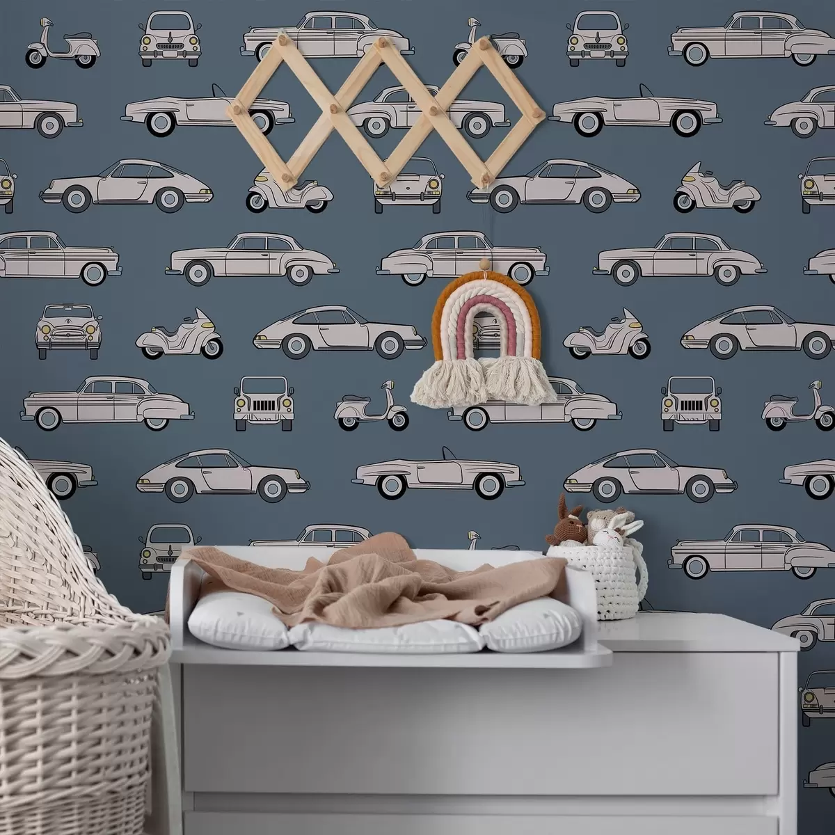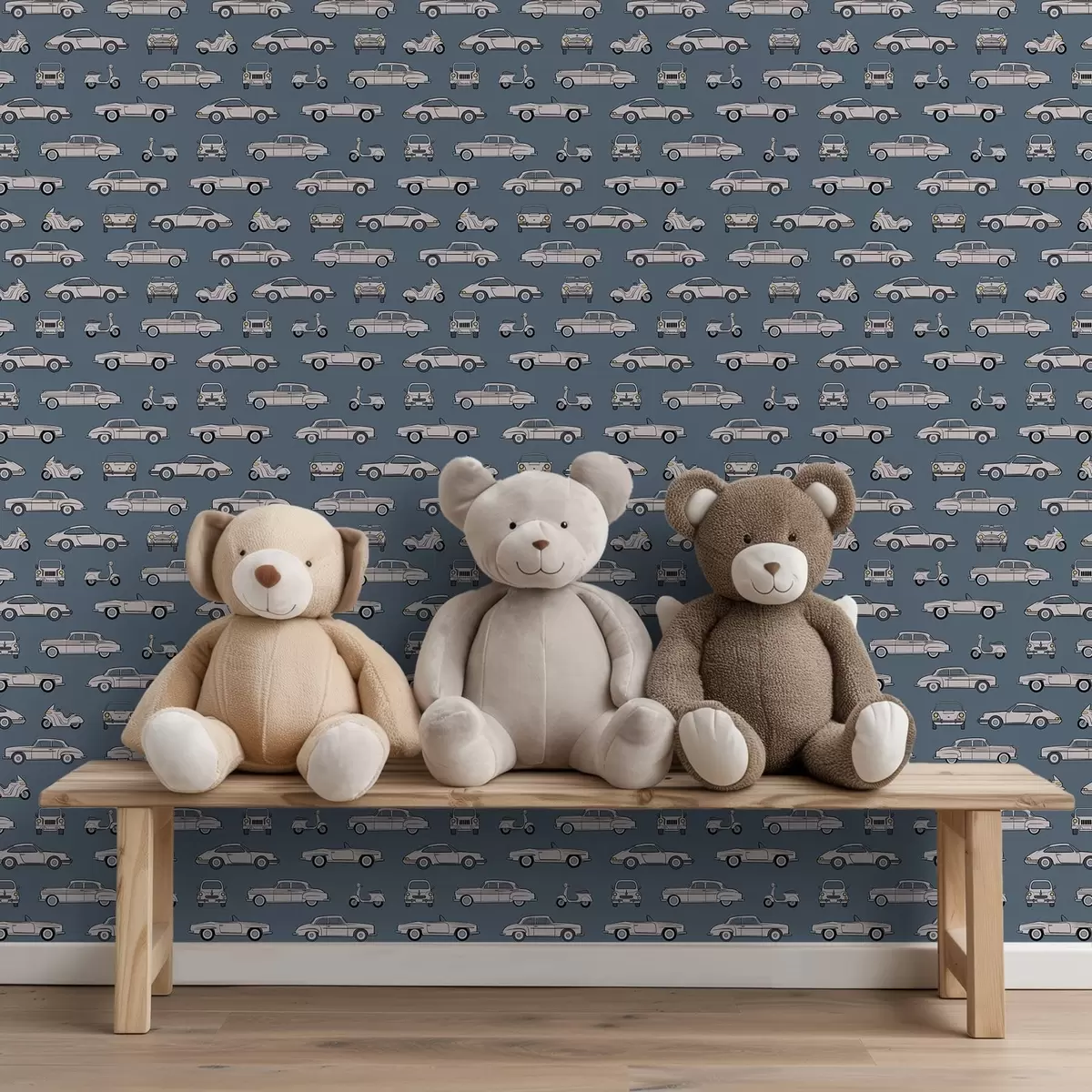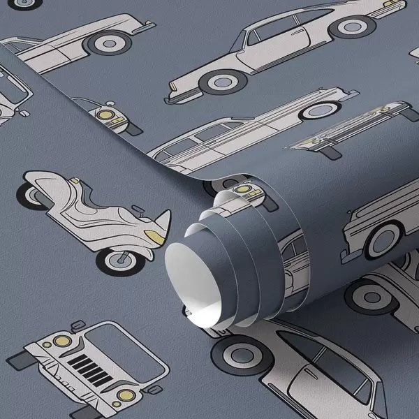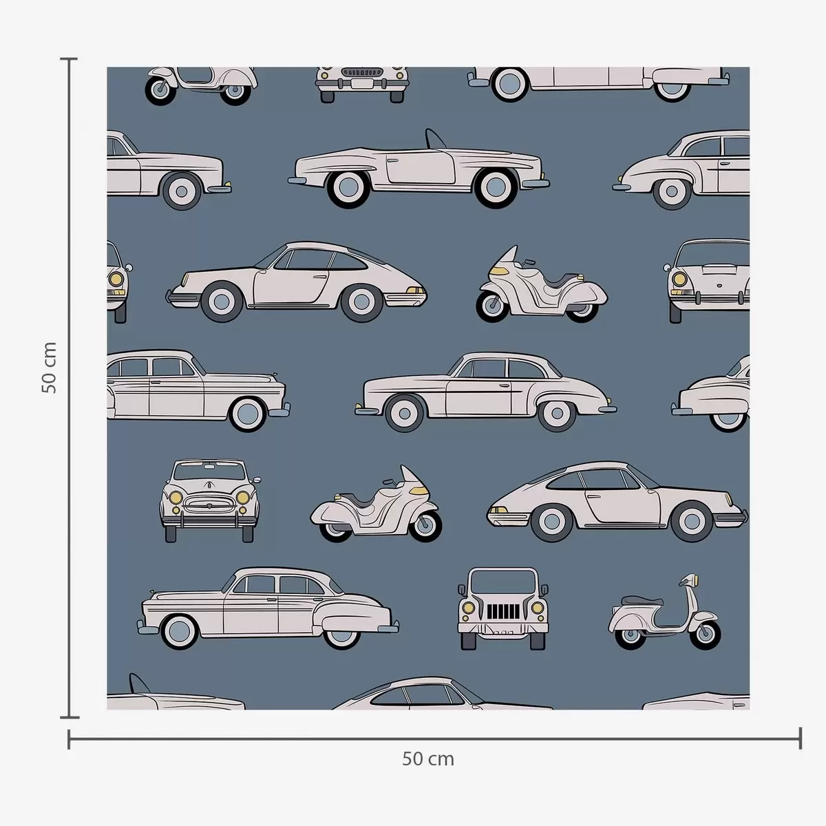 Tapetai Retro automobiliai ir motoroleriai mėlyname fone Nr. a01178