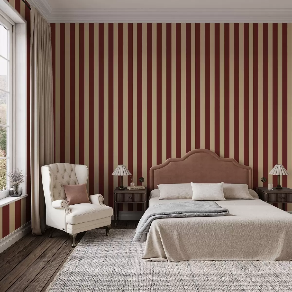 Tapetai Raudonos ir smėlio spalvos vertikalios juostos Nr. a01179