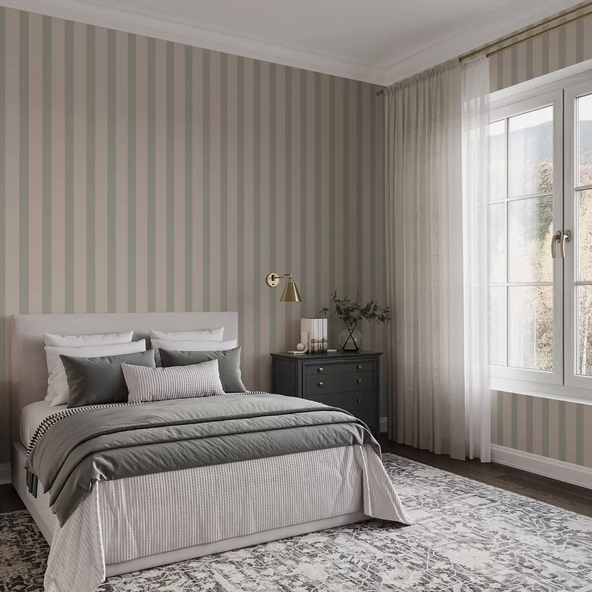 Tapetai Žalios ir smėlio spalvos vertikalios juostos Nr. a01180