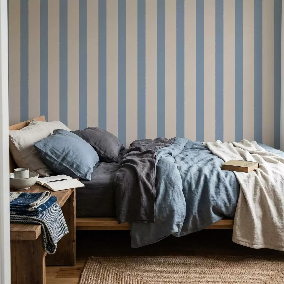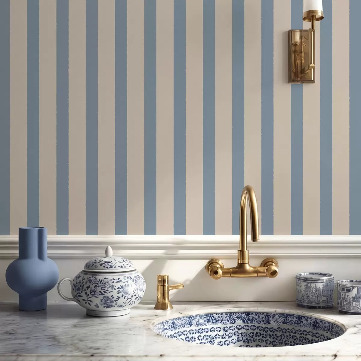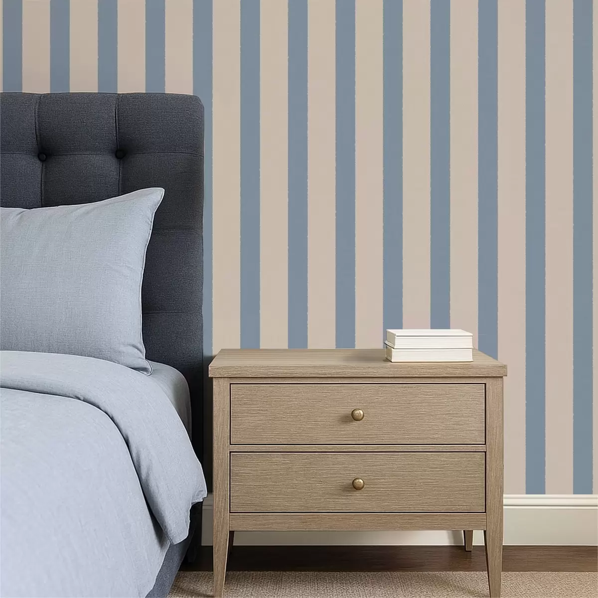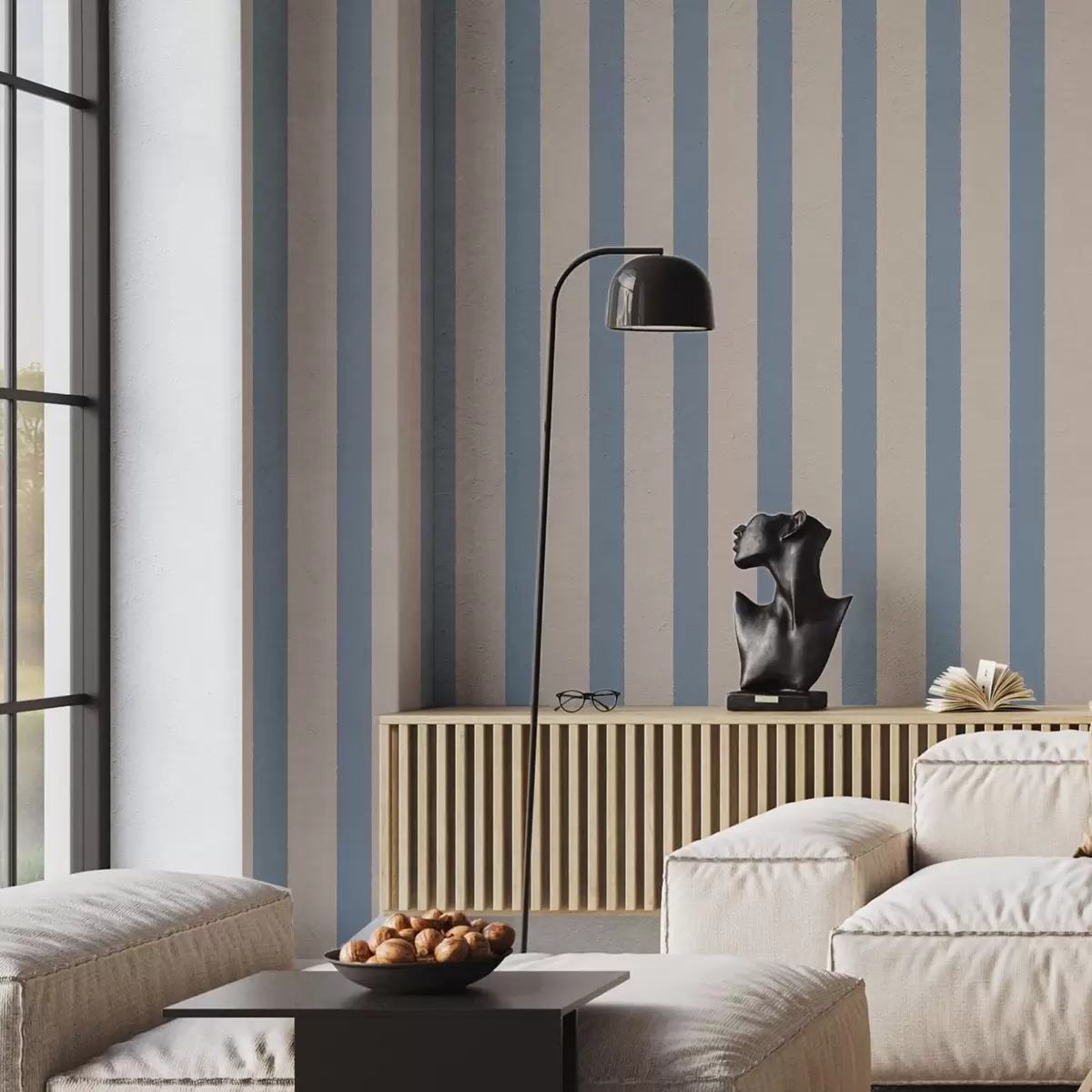 Tapetai Smėlio spalvos ir šviesiai mėlynos vertikalios juostos Nr. a01180v3