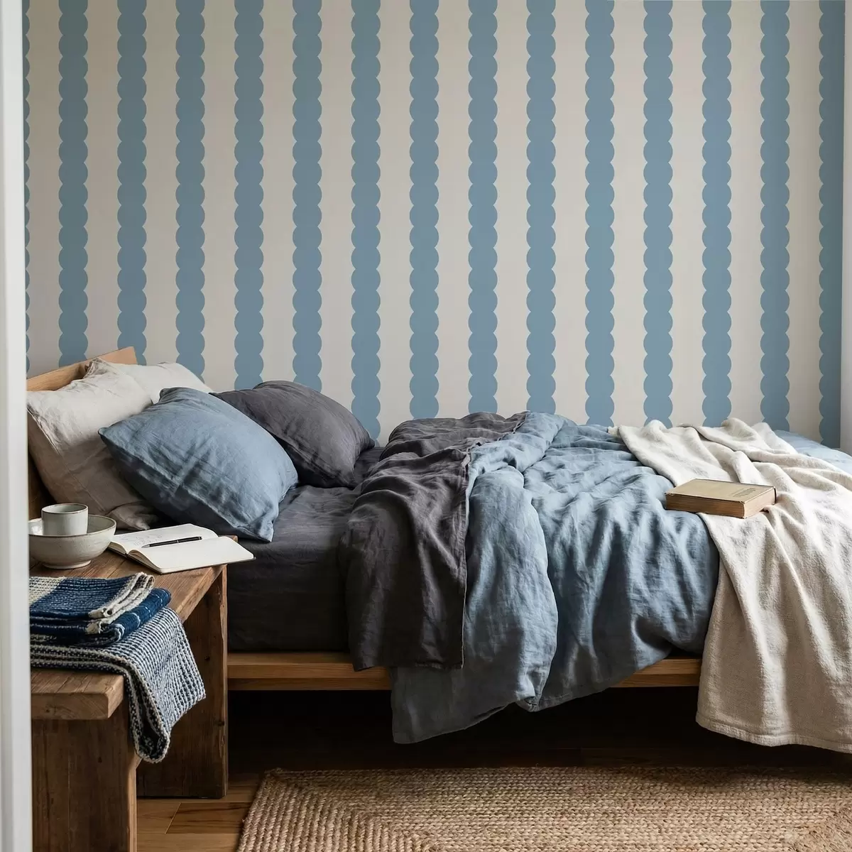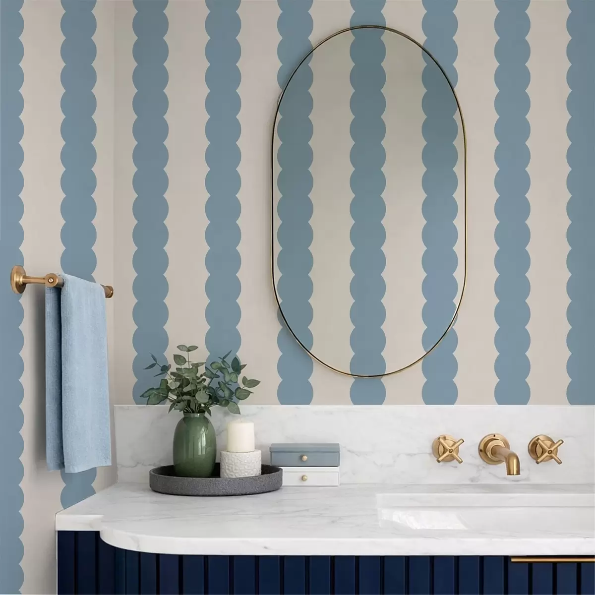 Tapetai Mėlynos banguotos juostos minimalistiniu stiliumi Nr. a01182