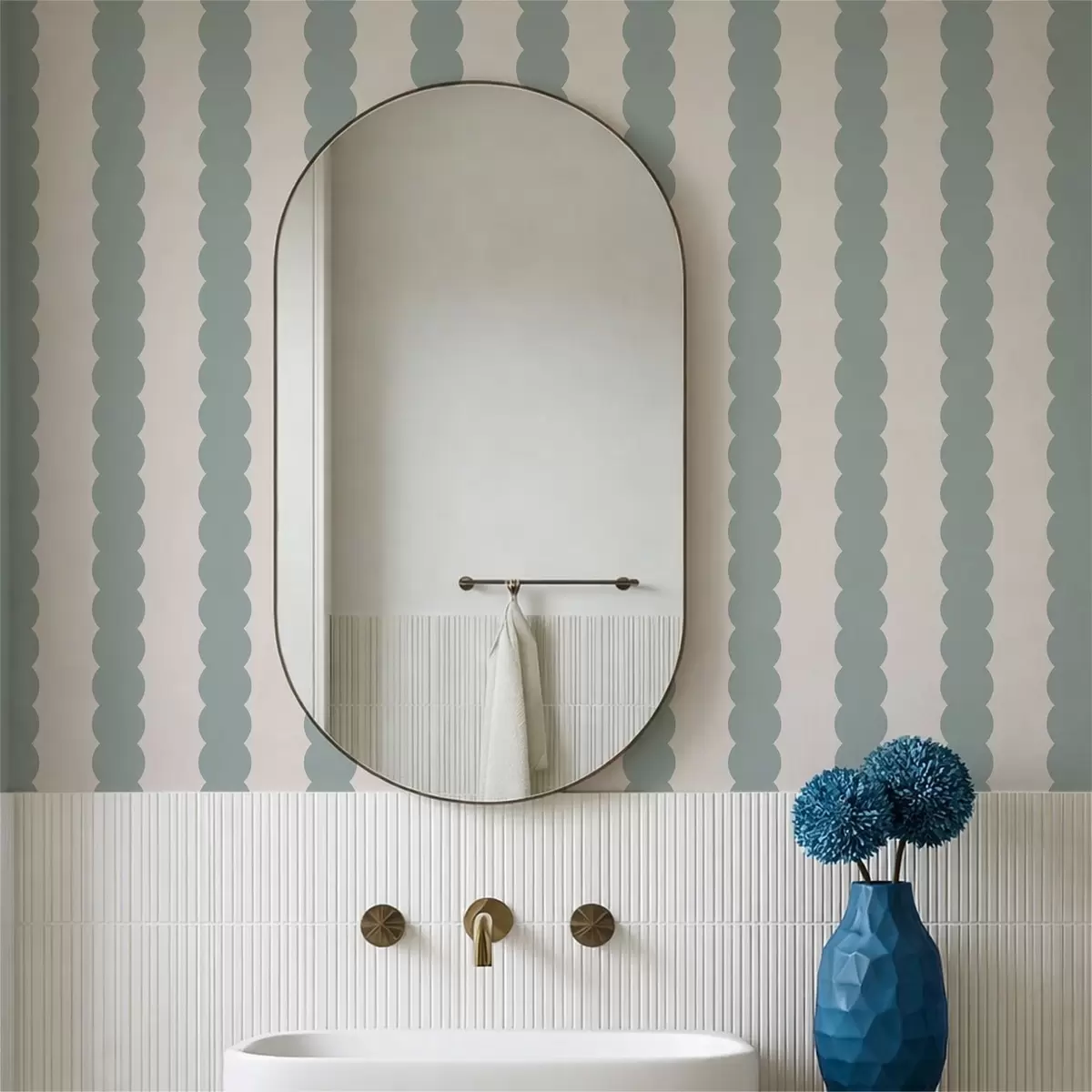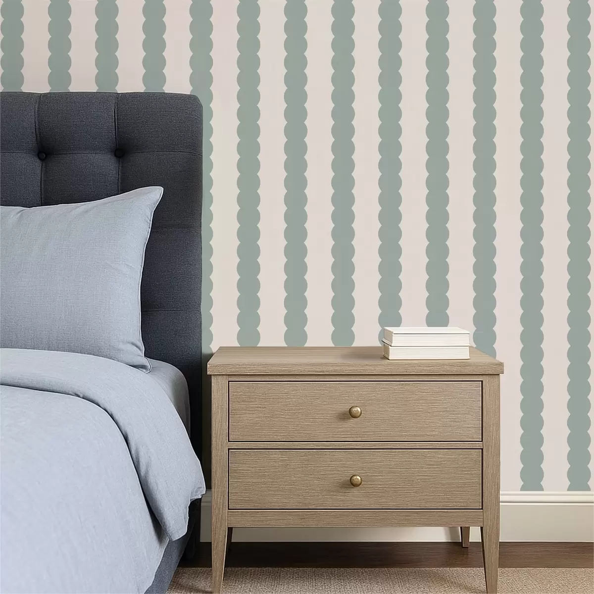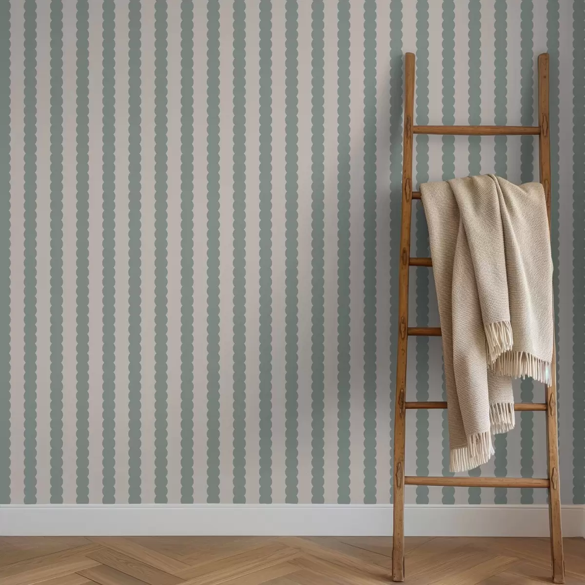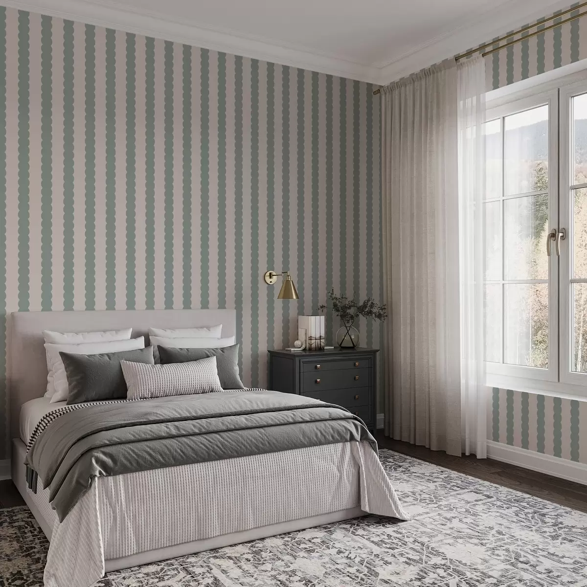 Tapetai Alyvuogių spalvos banguotos juostos minimalistiniu stiliumi Nr. a01182v1