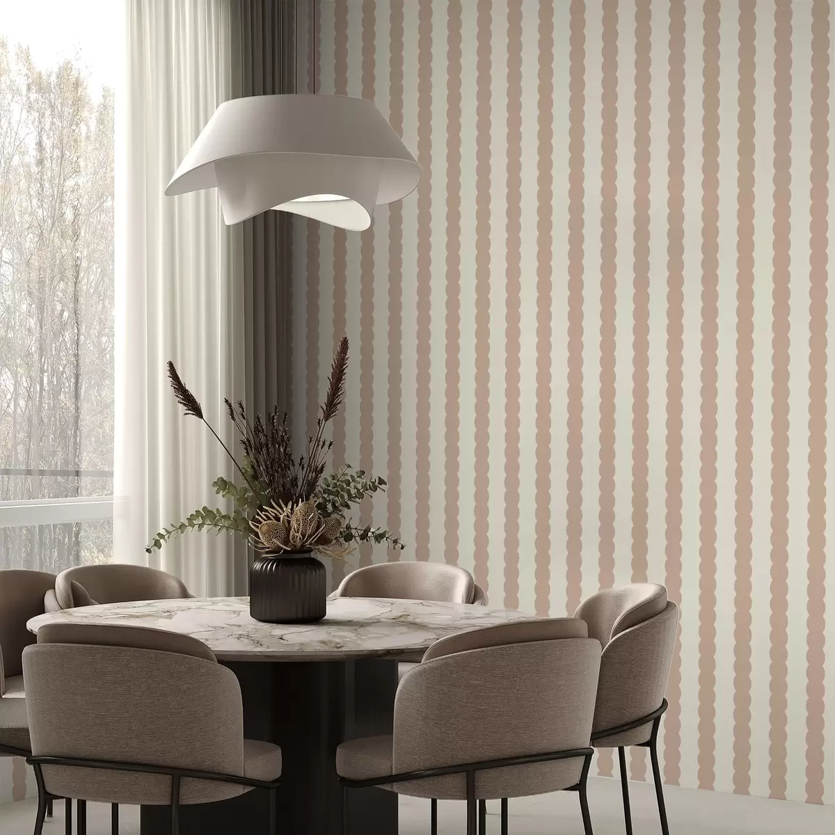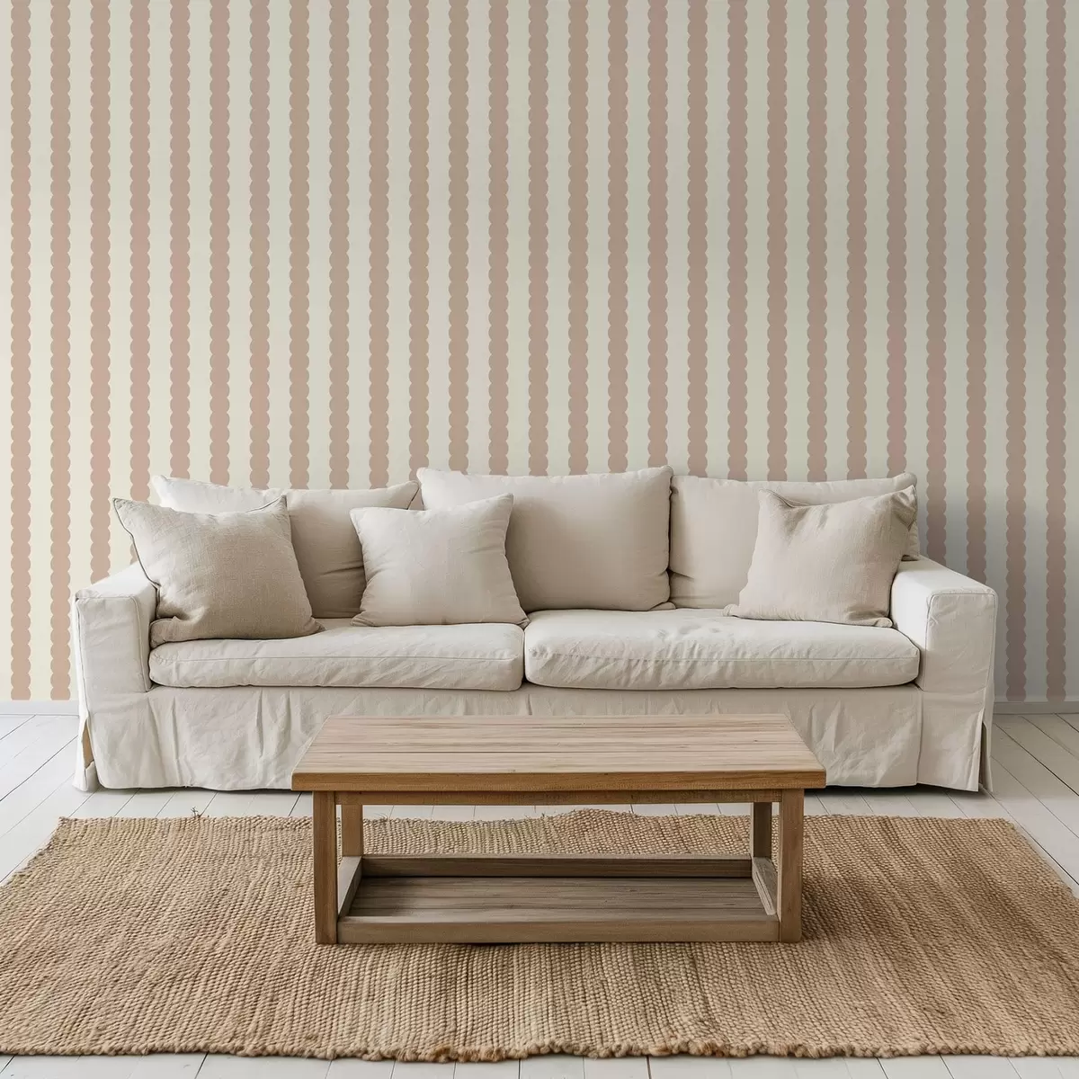 Tapetai Smėlio spalvos banguotos juostos minimalistiniu stiliumi Nr. a01182v2